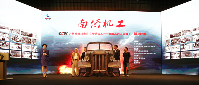 在掌声中,老机工罗开瑚老人、昆明市副市长阮凤斌先生、央视纪录频道总监刘文、《南侨机工》总导演张兵四人一起启动了《南侨机工》的启播仪式。