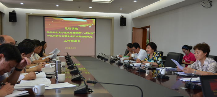 为认真落实《中共云南省委高校工委 云南省教育厅关于规范高校“三重一大”事项决策制度的实施意见(试行)等八个制度文件的通知》和《昆明市财政局关于贯彻落实行政事业单位内部控制规范(试行)的通知》文件精神,进一步强化内控规范管理和权力运行制约,推进我校廉政风险防控机制建设和内控制度建设,学校于5月23日下午在办公楼411会议室召开yl23455永利官网贯彻落实云南省教育厅廉政风险防控“八项制度”和昆明市行政事业单位内部控制规范工作部署会。学校党委副书记、纪委书记李媛芬,党办、纪委办(监审处)、组织部、校办、人事处、计财处、教务处、科研处、学生处、招就处、资产处、基建处、后勤集团部门主要负责人及纪委办(监审处)、计财处科级干部参加了会议。