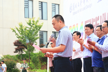 5月26日,美术与艺术设计学院2014届毕业生作品展在美术楼开幕。学校党委书记陈世波、副书记孙勇、副校长郭华、刘海发等学校领导,兄弟院校、企业、学校各部门领导、老师和学生代表一千余人参加了开幕式并参观展览。副校长郭华代表学校领导致辞。