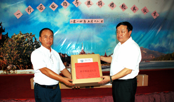 访问团一行参观访问曼德勒明德学校并向该校捐赠多媒体投影设备。缅甸明德文教会副会长、曼德勒明德学校董事长陈春林先生及番体惠副会长、姜鸿明校长及懂事会成员、缅中友好协会代表、教师代表、学生代表、家长代表参加了捐赠仪式。