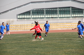 3月10日下午,山东鲁能女子足球队在获得2014年中国足协杯第四名,即将争夺第三名之际,应邀到我校同我校教职工男子足球队举行友谊赛。