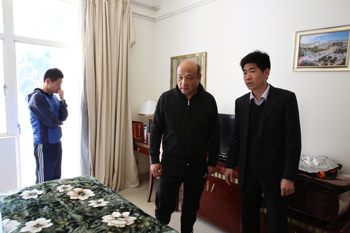 教练组成员在郑克刚助理及赵平院长等人陪同下,实地察看了我校学员住宿、食堂、体育运动场馆设施情况。