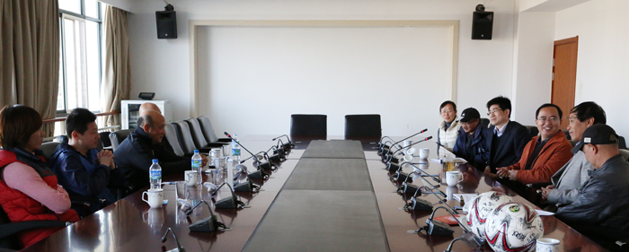 2月25日,山东省足球运动管理中心副主任、山东女子足球队主教练殷铁生率领女子足球队教练组成员到我校考察训练场地、商谈有关合作事项。校长蒋永文参加座谈并提出合作建议,校长助理郑克刚和体育学院院长赵平、党总支书记韦继康等陪同考察、座谈。