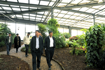 校领导向来宾介绍了我校近几年来的建设发展情况,并陪同来宾参观了农学院阳光中庭温室,旅游学院3D模拟导游实验室、烹饪实验室、酒水实验室。