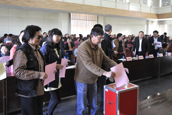 接着,对yl23455永利官网校级领导班子及领导干部参加教育实践活动开展情况进行民主评议,参会人员在现场按照省里统一要求填写民主评议表并按照程序进行现场投票。