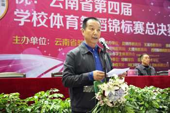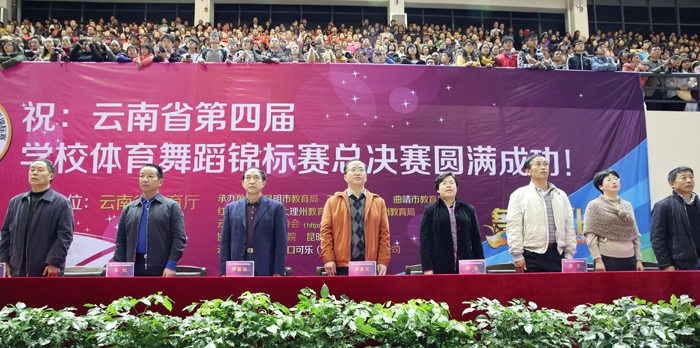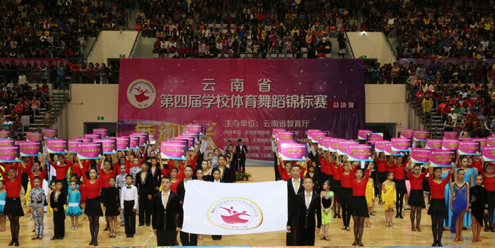 云南省教育厅副厅长罗嘉福致开幕辞,并宣布“云南省第四届学校体育舞蹈锦标赛”总决赛开幕。罗副厅长强调,党和国家、省委省政府历来高度重视青少年健康成长,把加强青少年体育工作作为提高全民健康素质和综合国力的国家战略,深入推进学校体育事业不断发展。各地各校要牢固树立“健康第一”的思想,把增强学生体质作为学校教育的重要目标之一,作为全面提高人才培养质量的重要内容。罗副厅长指出,举办体育舞蹈大赛是对学校体育工作和素质教育工作的一次综合性检阅。体育舞蹈不仅可以增强学生的体质,还可提高学生的综合素质,使学生的气质、姿态、动作更加优美,同时也促进学生对美的感受、美的理解和美的追求,提高学生的形体美、运动美,以及美的创造能力,从而全面推进素质教育。