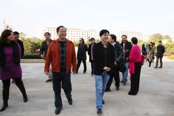 11月24日,在昆参加教育部高等学校艺术学理论类专业教学指导委员会第二次工作会议的专家一行,在云南艺术学院潘红副院长的陪同下莅临我校参观指导,陈世波书记、蒋永文校长、熊晶副校长亲切接待来访专家。