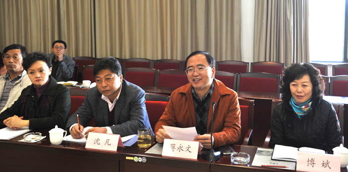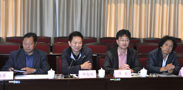我校校长蒋永文率教务处、经济学院、教师教育学院、社会管理学院、化学科学与技术系、数学系、物理科学与技术系、人文学院、外国语学院、信息技术学院、体育学院、美术与艺术设计学院、音乐学院、现代教育技术中心等部门负责人在办公楼502会议室与来宾进行交流座谈。