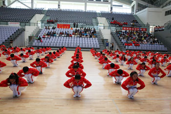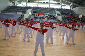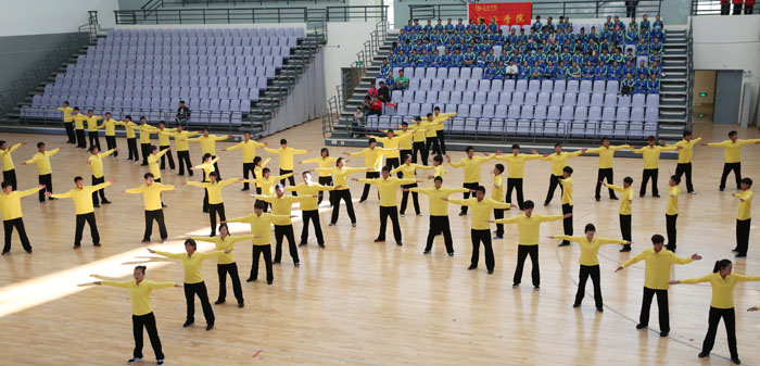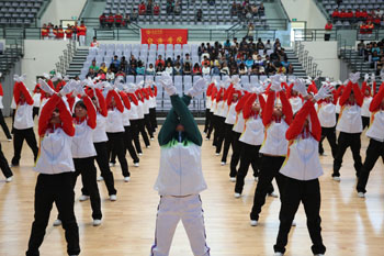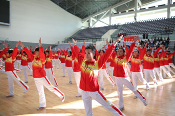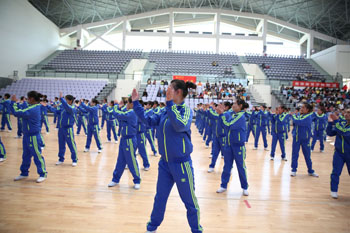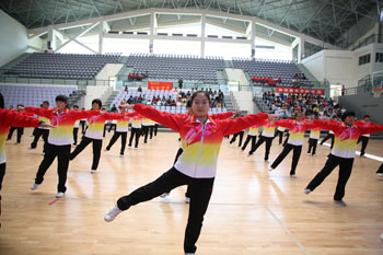 11月8日,以“运动、健康、向上、快乐”为主题的“2013年yl23455永利官网冬季运动会第九套广播体操比赛”在学校体育中心综合馆成功举行。学校党委副书记孙勇,副校长李翔到场指导。来自18个教学院系代表队近2000余名学生运动员参加比赛,教职工代表队进行了表演展示。