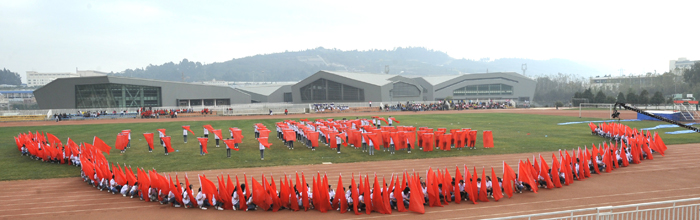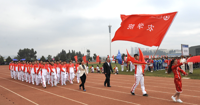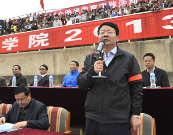 蒋校长指出,学校党政一直都十分重视体育素质教育和体育运动的开展。学校近年来在体育设施和体育场馆的配套建设上投入了大量资金。今年,学校综合体育场馆正式建成并投入使用,配套完备、设施精良的综合馆、网球馆、游泳馆、羽毛球馆等不仅充实了学校体育教学的需要,而且为全校师生开展各种球类比赛,健身、游泳项目以及各类大型活动等提供了更加优质的硬件保障。学校各单位不仅组织同学们开展各级各类竞技比赛,同时积极支持教职工成立各类运动协会、开展各种趣味运动。蒋校长说,一个优秀的人才必须拥有健康的体魄,才能在艰苦的学习、工作中保持充沛的精力;只有拥有坚忍不拔的意志,才能在激烈的竞争中保持坚定的信念;只有拥有顽强拼搏的精神,才能在奋斗进取的过程中攻坚克难、勇往直前、成就自我。一年一度的运动会既是对学校体育教学、竞赛组织等工作的检验,也是全体师生积极参与、刻苦训练、努力拼搏的成果展示。希望全体运动员努力进取、奋勇拼搏,赛出竞技水平,赛出道德风尚,赛出个性风采,赛出团结友谊;希望全体裁判员严守规程、公正裁判;希望全体工作人员热情服务、保障安全。