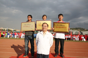 蒋校长,熊副校长、刘副校长、董副校长分别为团体前八名获得者颁奖。