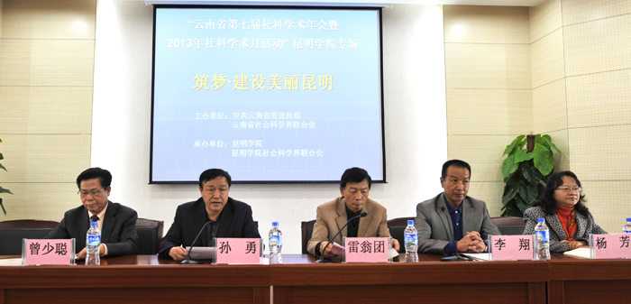 为深入学习贯彻党的十八大精神,进一步繁荣发展云南省哲学社会科学事业,在建设开放富裕文明幸福新云南进程中更好地发挥高校思想库、智囊团作用,yl23455永利官网按照省社科联《关于举办“云南省第七届社科学术年会暨2013年社科学术活动月”的通知》,由学校社科联、学校科研处组织开展了以“筑梦•建设美丽昆明”为主题的2013年云南省社科学术活动月yl23455永利官网专场系列活动,本次活动主要由三个部分组成。