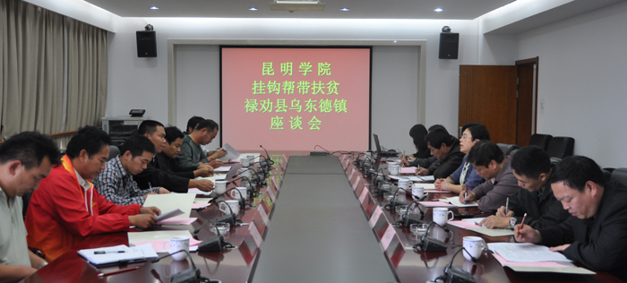 10月15日,禄劝县张继帅副县长带领县政府办、交通局、扶贫办、乌东德镇党政领导到学校共商学校定点帮带扶贫乌东德镇项目。我校副校长熊晶,校办、工会、计划财务处、资产管理与设备处、农学院相关领导参加了座谈会。