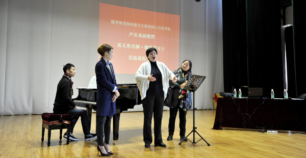 之后,武院长和李书记陪同来自哈尔科夫美术学院油画系的系主任兼俄罗斯列宾美院的客座教授维塔利•维克多洛伟奇•日尔德夫和来自哈尔科夫美术学院的乌莉亚诺娃•塔玛拉到美艺学院开展教学交流。靳院长陪同来自哈尔科夫美术学院外事办主任兼俄罗斯柴可夫斯基音乐学院副教授葛瓦鲁西娜•娜塔莉到音乐学院与师生开展教学交流。学校师生的积极参与和热情互动点燃了三位艺术家的现场教学的激情,现场教学气氛热烈,参加交流师生们普遍反映受益匪浅。我校教师的专业水平得到了三位艺术家的充分肯定。