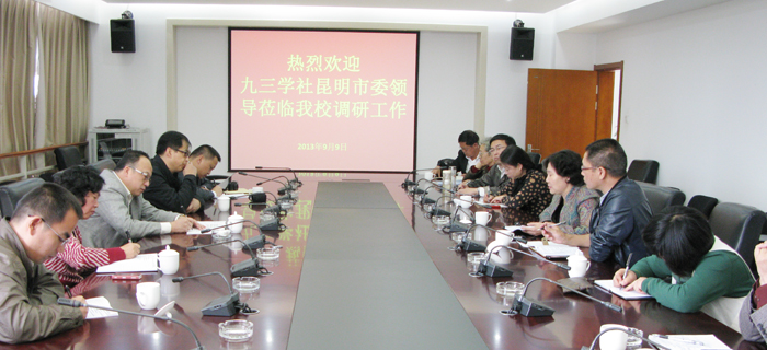 9月9日上午,九三学社云南省委副主委、市政协副主席、九三学社昆明市委主委常敏率领九三市委机关干部一行六人来到我校,就九三学社yl23455永利官网委员会工作开展调研。校党委副书记李媛芬,统战部部长沈中灿参加调研会,调研会由九三市委王云伟秘书长主持。