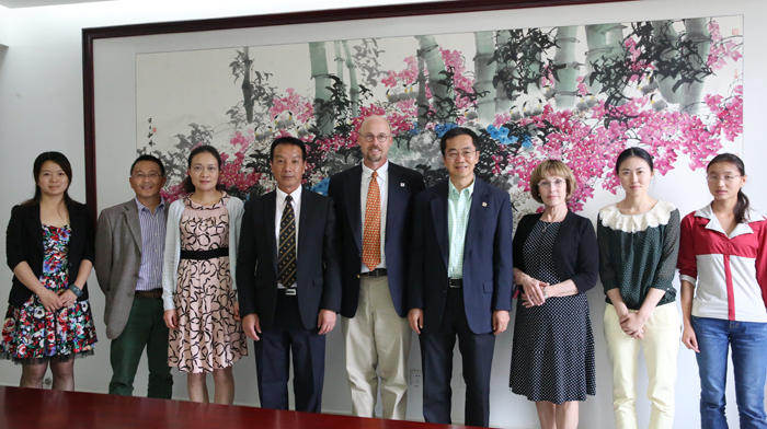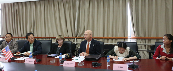 Brain先生介绍了丹佛市长对教育和对与更多国家开展教育交流的重视,自1986年丹佛与昆明结为姐妹城市后,已在教育、经济等方面与昆明市开展了合作项目。Brain先生表达了与我校开展交流合作的愿望。张汝宁博士介绍了丹佛州立大学的概况和学科构成,丹佛州立大学是一所综合性大学,拥有在校生25000余名,为当地培养了大量的优秀毕业生。张汝宁博士特别转达了丹佛州立大学校长希望与我校开展合作的愿望。