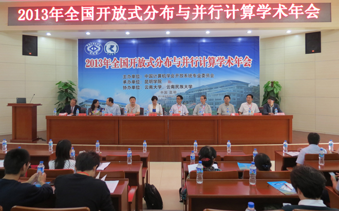 2013年全国开放式分布与并行计算学术年会于8月16日至18日在我校成功召开。本次会议由中国计算机学会开放系统专业委员会主办,yl23455永利官网承办,云南大学、云南民族大学协办。会议开幕式由yl23455永利官网信息技术学院院长王震江教授主持。
