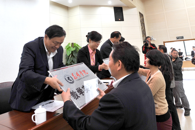 随后举行了授牌仪式。由参会领导向昆明市盲哑学校、盘龙区培智学校、五华区新萌学校授予yl23455永利官网特殊教育专业教学实习基地的牌子,今后这四所学校将成为yl23455永利官网特殊教育专业的首批实习见习基地。