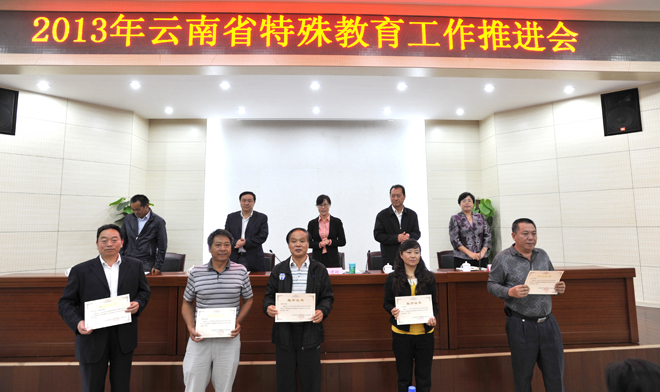最后,云南省教育厅王建颖副厅长发表了重要讲话。王副厅长首先介绍了云南省2012年特殊教育工作的几个特点:一是政策力度在加大,省委、省政府高度重视特殊教育发展事业,出台了系列政策,为特殊教育的发展提供政策性保障;二是特殊教育队伍不断发展壮大,yl23455永利官网是云南省第一家开办特殊教育专业的本科院校,开启了云南省自己培养特殊教育师资的先河;三是社会力量的广泛支持。香港苗圃行动等社会组织与我厅协作,有效的推动了我省特殊教育在基础设施建设及教师专业化程度上的发展;四是公费支持力度持续有力,省财政设立了5000万元的专项补助资金,大大提升了特殊教育学校的办学水平,改善了育人和康复条件。在总结成绩的同时,王建颖副厅长强调,我们必须清醒的看到,我省特殊教育在改革发展过程中面临的一系列困难和问题。对此,我们一定要从维护教育公平、促进残疾人全面发展的高度出发,充分认识做好特殊教育工作的重要性和迫切性,切实增强工作责任感和使命感,坚持把发展特殊教育列入重要议事日程,纳入当地经济社会发展和教育事业总体规划,统筹处理特殊教育与其他类型教育的关系,进一步加大工作力度,切实保障残疾儿童少年接受教育的权利。2013年重点要做的工作是:一是部门协作共同发展。形成合力,逐步健全残疾人教育和资助体系。二是扩大招生规模,改善办学条件。争取让未入学的残疾儿童少年尽可能的到校接受义务教育,提高我省残疾儿童入学率。三是建立扶持体系。要多渠道筹措资金,动员社会各界力量扶残助学,真正为特教学校、残疾人家庭、残疾学生解决一些实际困难和问题。四是用好用实2013年云南省级特殊教育专项补助资金。要加强资金管理,建立健全工作机制,加强对项目实施和资金使用等情况的监督检查,确保专项资金用在刀刃上;五是加强特教学校基础设施建设。以整合资源为主,利用现有资源开展特殊教育工作。六是稳定中间,延伸两头。要以康复训练为重点,在有条件的地区积极举办3岁以下残疾儿童的早期干预、早期教育和康复训练机构。要充分利用现有的教育资源,鼓励支持普通州(市)级特殊教育学校开设高中及以上阶段的教育。七是强化特殊教育信息化教育。要根据残疾学生特点,积极开展信息技术教育,提高残疾学生信息素养和运用信息技术能力。八是加强特殊教育的科学性和专业性。切实加强师德师风建设,大力宣传全国教书育人楷模等优秀教师典型,进一步增强广大教师教书育人的责任感和荣誉感。对成绩突出者进行表彰奖励。九是落实特殊教育安全管理工作。全面做好安全生产大检查和督查工作, 排查摸清安全隐患和薄弱环节,落实责任,认真整改。组织学生进行安全演练,特别要加强对残疾女学生的保护。