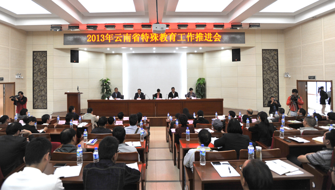 9月4--5日,云南省2013年特殊教育工作推进会在我校办公楼D区报告厅隆重召开。省教育厅副厅长王建颖、省残联副巡视员吴正杰、yl23455永利官网党委副书记孙勇、yl23455永利官网副校长熊晶出席会议。全省各地州(市)分管基础教育的教育局副局长、基础教育科科长,全省特殊学校(含附设特教班)校长,yl23455永利官网教师教育学院、临沧师专的教师等130余名人员参加会议。会议由云南省教育厅基础教育处詹显良副处长主持。