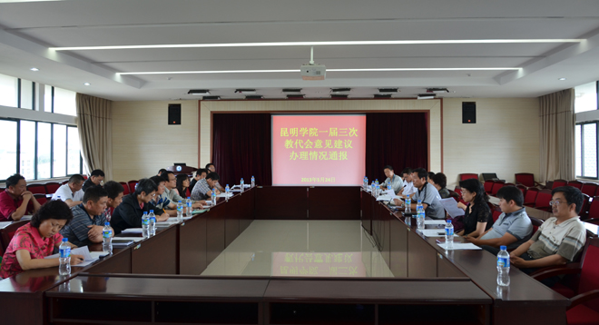 会上,校工会常务副主席孙晓坤首先向与会人员作通报。学校一届三次教代会代表们所提的意见、建议收集汇总为五个方面共计83条。其中关于学校教育教学的意见建议30条,包括了教学及管理,学科、课程建设,教风、学风、考风建设,教师成长,培养培训,实验室建设等方面;关于学校学术科研方面的意见、建议7条;关于学校管理、制度方面的意见、建议27条;关于学校基础建设方面的意见、建议5条;关于学校服务教职工方面的意见、建议14条。学校党委非常重视教代会代表的意见,于2013年4月19日召开第5次党委会专题研究了代表提出的意见和建议。