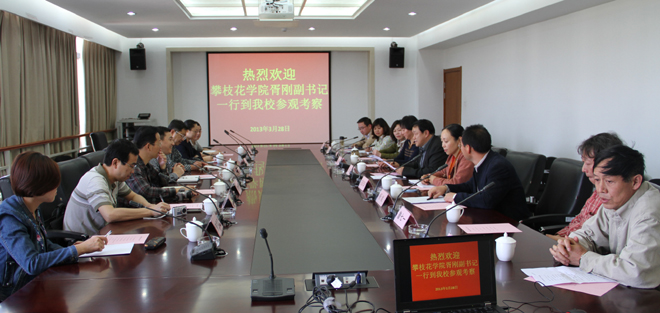 3月28日下午,攀枝花学院党委副书记胥刚率学校党委行政办公室、人事处、发展规划处、经济管理学院、人文社会科学学院、社会科学联合会等部门负责人一行7人到我校考察交流。学校党委副书记孙勇出席,党办、组织部、宣传部、人事部、经济学院、人文学院、昆明科学发展研究院办公室、昆明滇池(湖泊)污染防治合作研究中心办公室等部门负责人参加了交流座谈会。