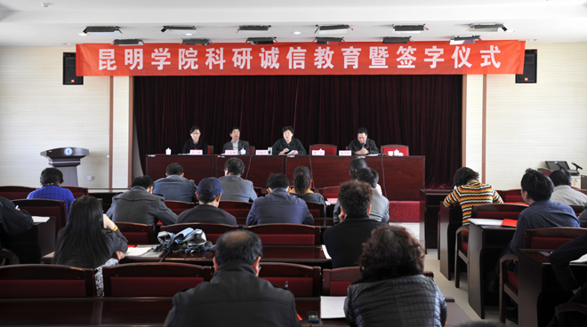 为了贯彻落实教育部关于科研项目管理、科研经费管理、科研行为管理三个意见的文件精神,进一步弘扬我校优良校风,维护学术道德,严明学术纪律,规范学术行为, 3月6日下午,学校监察审计处、科研处联合在办公楼502会议室组织召开了yl23455永利官网科研诚信教育暨科研诚信承诺书签字仪式。学校党委副书记(纪委书记)李媛芬、监察审计处处长陈开祥、科研处处长王定康、科研处副处长吴瑛及近60位获国家、省部级科研课题的项目负责人参加会议,会议由李媛芬副书记主持。