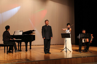 1月29日晚,我校室内乐团在音乐楼音乐实践教室为2013年国际水历史学会区域国际学术会议举办专场音乐会,来自联合国教科文组织总部及中国、法国、澳大利亚、芬兰等20多个国家和地区的专家学者、机构高级官员,我校副校长熊晶、董建华,党委办公室、党委宣传部、校长办公室、保卫处、昆明滇池(湖泊)污染防治合作研究中心办公室等部门的领导观看了演出。