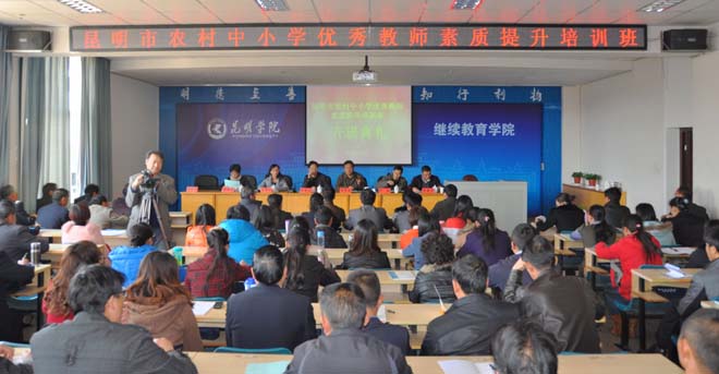 经中共昆明市委组织部、昆明市教育局和我校继续教育学院认真策划和筹备,昆明市农村中小学优秀教师素质提升培训班于1月7日在我校昆师路校区开班。100名昆明市教育局2011年表彰的农村优秀中小学教师和2012年昆明市受省教育厅表彰的13名中小学特岗教师“特岗之星”,将参加为期一周的提高培训。