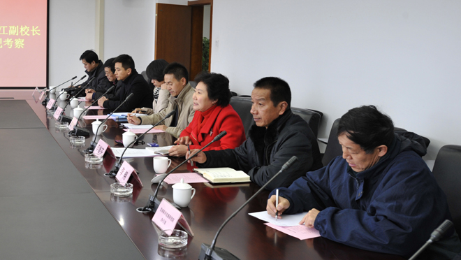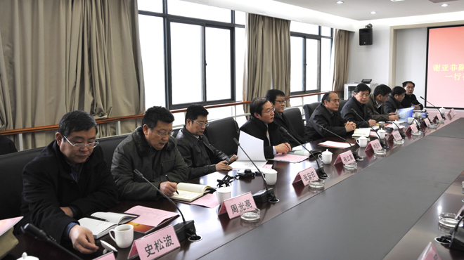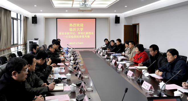 1月10日上午,山东临沂大学党委副书记谢亚非,副校长李培江,率宣传部(统战部)、学工部、工会、团委、招办、离退休工作处、保卫处、图书馆、网络中心、沂蒙文化研究院、外国语学院、传媒学院、音乐学院、马克思主义学院、党办、校办等部门负责人到我校参观交流。