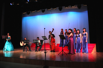 群体艺术研究所的工作方针是“实践为基石,科研促发展”。作为音乐艺术研究机构必须构建一个与之相配套的实验平台。在yl23455永利官网领导的大力支持下,今年3月成立了我省第一个专业化的室内乐团——yl23455永利官网室内乐团。通过乐团成员的不断努力,在较短时间内排练了一套综合室内乐作品。音乐会以综合器乐为基本框架,融合声乐、舞蹈等多形式的舞台表演。演出作品经过精心设计,曲目丰富,风格各异,如欧洲古典室内乐、中国民族室内乐以及极具现代感的爵士组合,受到观众的一致好评。