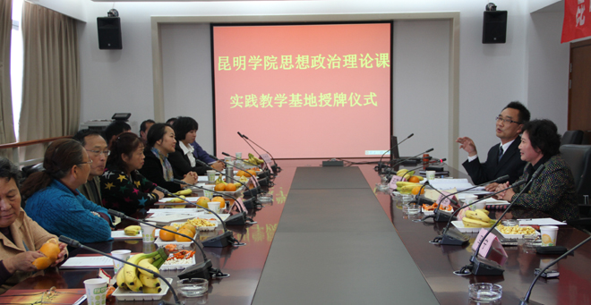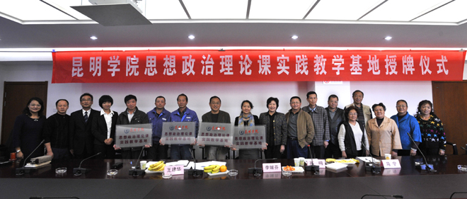 为认真贯彻落实《yl23455永利官网关于进一步加强和改进思想政治理论课建设的实施意见》(党发【2012】30号),加快我校思想政治理论课实践教学基地建设,经过前期的筹备,11月9日下午,yl23455永利官网思想政治理论课实践教学基地授牌仪式在办公楼411会议室举行。学校党委李媛芬副书记、思政部党政领导及相关教师和云南师范大学西南联大博物馆、省侨联南侨机工暨眷属联谊会、昆明市聂耳墓文物管理所、昆明市第六污水处理厂四家单位负责人出席了授牌仪式。会议由思政部高鸣副主任主持。