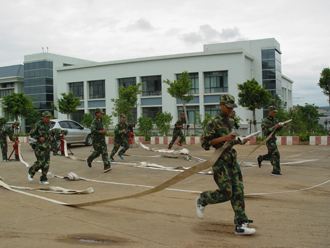 我校为期11天的2012级新生军训工作正在校内如火如荼地进行。按照《yl23455永利官网2012级学生军训计划》,我校今年在往届学生军事技能常规训练内容的基础上,新增了消防、防暴、战伤救护三个训练内容。在新生军训中开设消防技能训练,旨在一方面完善我校新生军事技能训练内容,一方面强化我校消防安全工作。消防安全从新生抓起,通过多种形式的消防教育活动,使新生从进校开始亲身体验消防、感受消防,接受专业的消防技能训练,以提升新生消防安全意识,提高新生对初期火灾的扑救和逃生自救能力,为平安校园打下坚实基础。