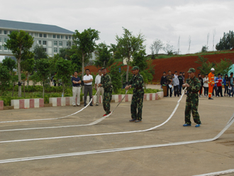 作为新增的军事技能训练科目,校领导高度重视,督促指导相关职能部门共同抓好此项工作。学生处与承训部队加强沟通协调,按照军训计划认真落实好各项工作;保卫处协调经开区消防大队派出3名消防教官,并配合消防教官按制定的培训科目内容进行专业训练;各学院(系)按照学生处的统一安排,从城建学院、社管学院等院系军训学生中抽调了100名新生参加消防技能专业训练。