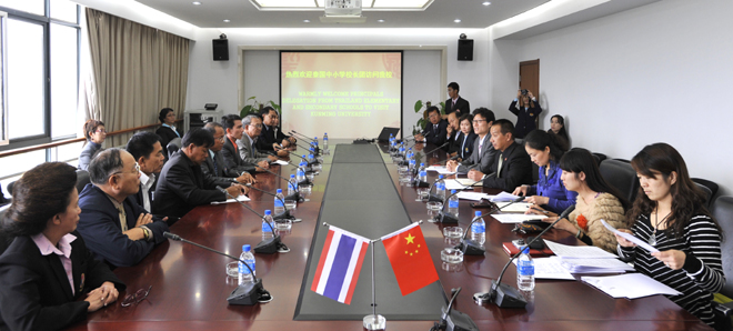 9月17日下午,泰国中小学的25名校长到我校访问考察,副校长李翔代表学校领导热情欢迎并与之座谈,国际交流合作处副处长陈静及有关教师参加座谈。