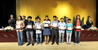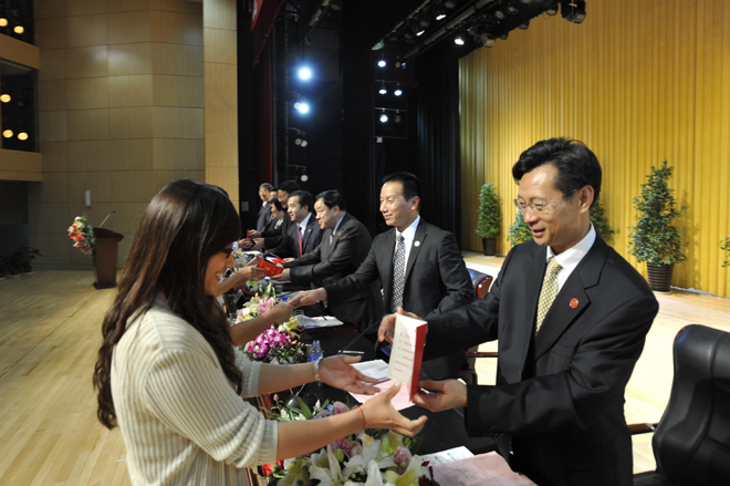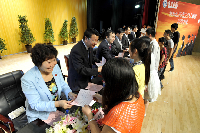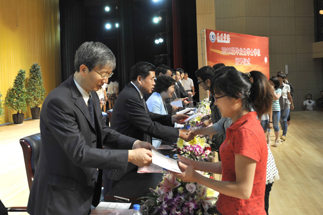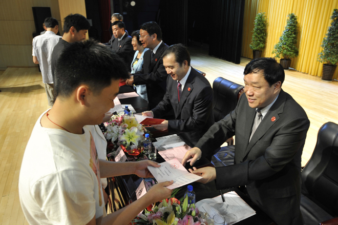 首先,李翔副校长宣读《yl23455永利官网关于对2011~2012学年省级三好学生、优秀学生干部、先进班集体进行表彰的决定》和《yl23455永利官网关于对2012届省级优秀毕业生、校级优秀毕业生进行表彰的决定》。76名省级三好学生、22名省级优秀学生干部、9个省级先进班集体;196名省级优秀毕业生,593名校级优秀毕业生受到了表彰和奖励。与会校领导分别为获奖个人和集体颁发荣誉证书。