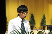 在同学们收获硕果的喜悦中,毕业生代表、老师代表、家长代表分别登台发言。信息技术学院本科毕业生左俊、社会管理学院专科毕业生梁毕能怀着“母子”眷恋惜别之情分别代表本、专科毕业生作了发言。他们回顾了自己在校学习历程和精彩生活,感念学校超常规、跨越式、追赶型发展中积淀的精神陶冶、感激老师们给予的学业指导与精神培育,回味学习生涯中求知的快乐与满足,并表示将牢记老师的教诲,在新的学习环境与工作岗位上艰苦奋斗,秉承“明德至善、知行利物”的校训,踏实做人,认真做事,为年轻的yl23455永利官网增光添彩。
