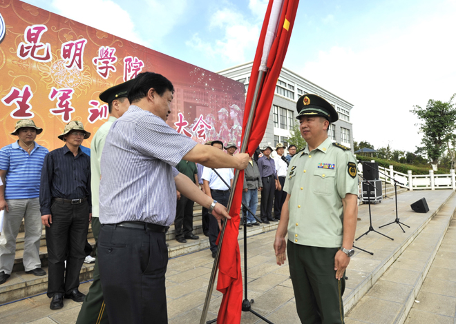 动员大会在中华人民共和国国歌声中拉开了序幕,刘宜萍处长宣布了我校2011级学生军训团组成情况。yl23455永利官网党委孙勇副书记、武警边防部队士官学校苏强副校长向军训团授旗。