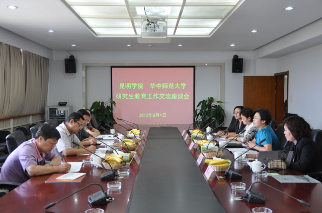 座谈会上,熊晶副校长首先介绍了yl23455永利官网2008年以来的跨越式发展,重点对学校“十二五”硕士点建设学科及四个研究平台的研究现状及发展构想进行了阐释。王恩科副校长也对华中师范大学进行了介绍,华中师范大学是教育部直属的重点综合性师范大学,国家“211工程”重点建设高校,国家“985”优势学科创新平台建设高校,国家首批批准的专业学位授予单位之一。在了解yl23455永利官网的学科设置、学位点建设等情况后,王副校长认为华中师范大学与yl23455永利官网互补性强,为了促成中、西部院校的协同创新,共同提升院校内涵建设能力,两校之间可先签订框架性合作协议,正式搭建起校际合作关系。进而可在师资培训(含教师学历提升、硕导资格认定)、本科毕业生考研、农村调研基地、滇池水污染治理等四个方面签订具有可行性的具体合作协议,将两校的合作落到实处。