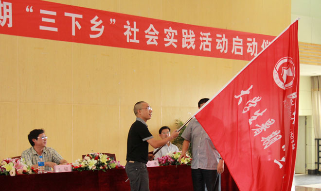 6月28日下午,我校2012年暑期大学生“三下乡”社会实践活动启动仪式在惟行楼1501会议室举行。学校党委副书记孙勇、党委宣传部副部长董学荣、教务处副处长王韬、学生处副处长侯青妮以及教师教育学院、人文学院、音乐学院、信息技术学院、城乡建设与工程管理学院、自动控制与机械工程学院、农学院、医学院、旅游学院师生代表共200余人参加了仪式。仪式由团委书记何昊宸主持。