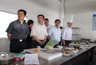 王副主任在我校党委书记梁晓谷、校长陈世波等领导的陪同下,饶有兴致地参观了轨道交通实验室、烹饪实验室、生物实验室等教学实验场地。王副主任边参观,边不停地询问实验室工作人员实验设备性能、功能,能否满足师生教学、科研需求等情况。