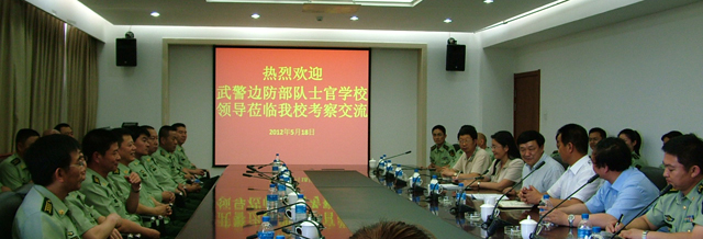 5月18日下午,中国人民武装警察边防部队士官学校苏副校长、姜副校长率该校有关部处领导和教研室主任一行30余人到我校考察交流。考察组一行首先观看了我校改革发展专题片《丰壤育才耀春城——奋进中的yl23455永利官网》。校党委副书记孙勇、副校长李翔、苏副校长分别介绍了各自学校基本情况和改革发展中的亮点,并在优势互补、加强合作共建等方面达成共识。