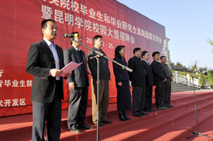 云南省高校工委副书记陶晴,省人才市场副主任王朝阳,省大中专毕业生就业服务中心主任方伟、副主任周舟,昆明市人才服务中心主任吴迪,中国移动通信集团云南有限公司副总经理李重宇,yl23455永利官网党委副书记孙勇、副校长李翔等领导出席洽谈会启动仪式。参加启动仪式的还有昆明经济开发区人事劳动局、人才交流中心,昆明高新技术开发区人事劳动局人力资源中心等相关部门负责人,省内各高等院校招生就业处负责人,我校各院(系)领导、相关部门负责人及3000余名学生。