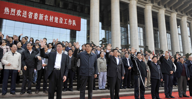 为认真贯彻落实云南省第九次党代会及省委、市委关于开展群众观点群众路线群众利益群众工作教育、实行干部直接联系群众制度工作的有关文件精神,我校借派驻新农村指导员之机,把进一步加强新形势下群众工作,深入农村和普通群众中,扩大交流和沟通,深化干群关系,促进农村科学发展、和谐发展、跨越发展与“四群”教育工作有机结合起来。今年,全省又派出2.3万名新农村建设指导员驻村开展帮扶工作。我校昆明科学发展研究院办公室主任、原第五批新农村建设工作队麻栗坡县总队长管彦平同志,仍续任麻栗坡县总队长。学校在各党总支(直属支部)推荐和本人申请的基础上,学校选派了6名新农村建设工作指导员。其中:经济学院党总支书记李跃波同志任昭通市水富县工作队总队长,职业技术教育中心副主任丁方同志任保山市隆阳区工作队队长,医学院政治辅导员耿明同志、保卫处干部祖治亮同志任保山市隆阳区工作队指导员,实习基地管理委员会助理讲师胡春凤同志任昭通市水富县指导员。