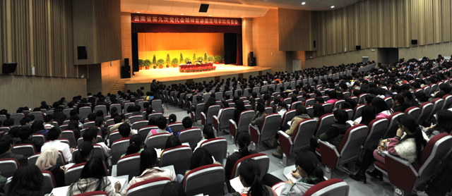 张副部长对今后五年云南经济社会发展的主要任务和工作举措从经济、民主政治、社会、文化和生态五个方面进行了深刻分析和系统阐述。他还特别强调了要针对云南省党员队伍中存在的问题全面加强党的建设,一要着力提升斗志解决精神懈怠的问题;二要加强组织建设解决能力不足的问题;三要不断提高新形势下群众工作的能力和水平解决脱离群众的问题;四要加强制度的有效执行力度,解决执行力问题。最后张副部长指出,贯彻落实省第九次党代会精神,要做到真学、真信、真懂、真用,发扬理论联系实际的作风,化识为智、转智为力,实现云南科学发展、和谐发展、跨越发展。 梁晓谷书记总结到,张副部长的宣讲既有理论分析,又有实践佐证,深入浅出、高屋建瓴,对我们领会贯彻党的第九次党代会精神起到了极大的帮助作用,对我们充分认识省第八次党代会以来云南经济社会发展取得的巨大成就和准确把握省第九次党代会大会主题、奋斗目标、主要任务、工作举措等具有积极的启发意义。学习贯彻落实省第九次党代会精神将是我校各级党组织当前和今后一个时期首要的政治任务,校党委已下发学习贯彻《关于认真做好中国共产党云南省第九次代表大会精神宣讲工作的通知》部署工作,希望各级党组织、党员干部按照要求扎实组织师生学习,坚持集体学习和个人自学相结合,坚持通读文件和座谈研讨相结合,通过组织各种形式的学习,进一步掀起我校学习省第九次党代会精神的热潮。