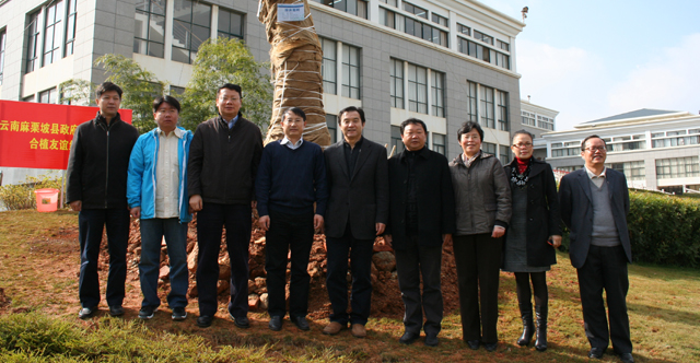12月18日,云南省麻栗坡县人民政府与我校在新校园合植友谊纪念树。我校党委书记梁晓谷、校长陈世波、副校长熊晶,麻栗坡县人民政府县长彭正兴、县委副书记胡大权、县人大常委会副主任陆天梅、县政府副县长李贵洪等领导参加了植树活动,共同挥锹为绿黄葛树友谊纪念树培土、浇水。 近年来,我校积极响应省委、省政府建设新农村的号召,先后分别派出了几批新农村建设指导员支持新农村建设,管彦平同志在麻栗坡县挂职锻炼,就是我校派出的新农村建设指导员之一。借此机会,我校充公发挥科研、人才、教学资源优势,加强与麻栗坡县合作,在双方签订的县校合作协议框架内开展涉及经济社会发展、教育发展、人才培养、干部培训等方面合作,支持麻栗坡县的经济社会发展;在国家实施新一轮西部大开发、兴边富民工程和云南省实施“两强一堡”战略的新形势下,发挥麻栗坡县桥头堡的区位优势,在经贸旅游、产业发展、城镇化、非公经济、投融资、改善民生、社会发展、党的建设、边境巩固等方面选择相关课题进行研究与合作;麻栗坡县发挥民族资源和民族文化优势、以老山精神为核心的爱国主义教育的资源优势,在麻栗坡县建立yl23455永利官网师生社会实践基地,为yl23455永利官网办学服务。 在优势互补、互利互惠、真诚合作、讲求实效、共谋发展的合作中,双方建立了全面、长期、稳进的合作关系,结下了深厚的友谊,麻栗坡县政府向我校赠送了2棵绿黄葛树、数十株灰金竹和甜龙竹作为友谊纪念树,愿双方友谊源源流长。