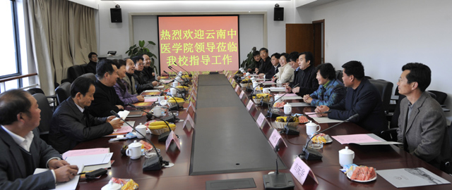 我校梁书记在座谈会上致辞说,yl23455永利官网是一所新组建的学校,在初期的合并组建或组建后的建设发展中,得到了省、市领导和上级主管部门的关怀和大力支持和各兄弟院校的鼎力帮助。今天,云南中医学院党政领导班子一行的到来,就是对我校在办学和建设发展上的大力支持。希望两校在今后的工作中加强联系和沟通,在办学和建设发展上相互帮助、取长补短,共同把学校建设发展好。接着,梁书记向来宾简要介绍了我校从合并组建到目前学校建设发展的基本情况。