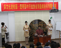 讲座以精彩的茶艺表演开始,刘会长以娴熟的技法为在场的220余名师生表演了沏泡普洱茶。接着,他从“茶”字的来历引出了有关茶的社会功能,同时向同学们阐述了如何冲泡普洱茶、什么是茶文化以及茶叶的药用功能等。讲座最后,刘会长代表昆明茶叶行业协会向yl23455永利官网学生社团联合会赠送了字画,并且一一回答了同学们提出的问题。