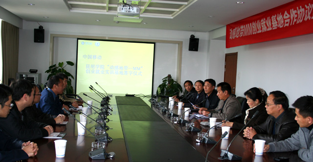 11月14日,我校与中国移动通信集团云南有限公司昆明分公司在洋浦校园办公楼311签署“动感地带——MM”创业就业实训基地合作协议。我校李翔副校长,中国移动通信集团