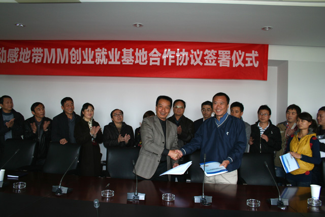 最后,李翔副校长与韩骥副总经理就“动感地带——MM”创业就业实训基地合作协议签字,与会人员共同见证了合作协议签字,并合影留念,这标志着我校“动感地带——MM”创业就业实训基地建设正式启动。